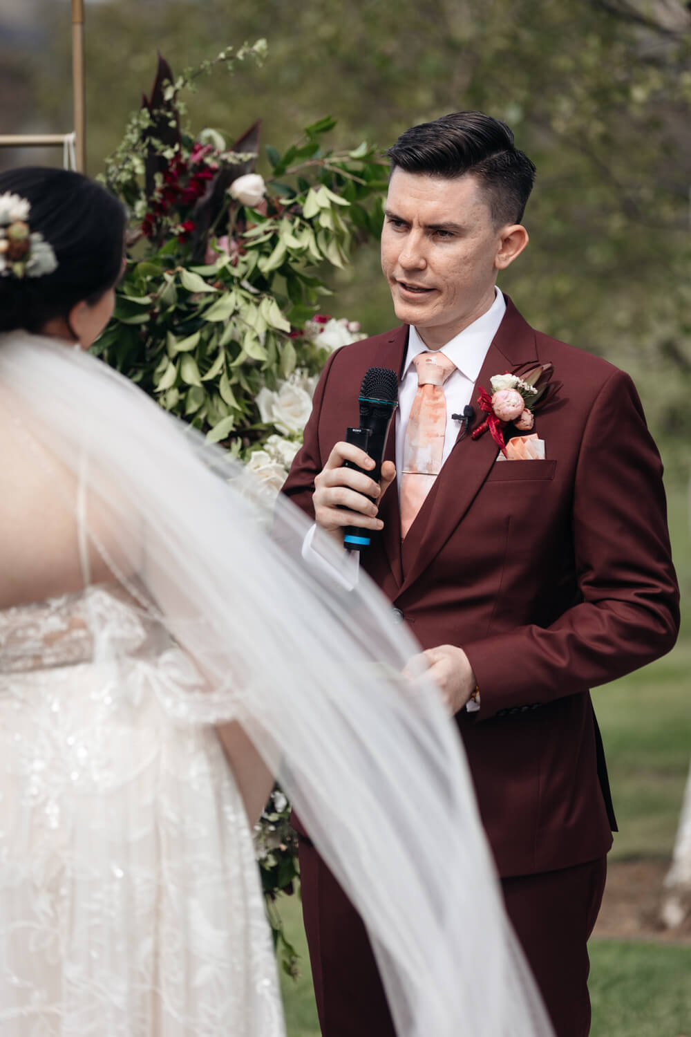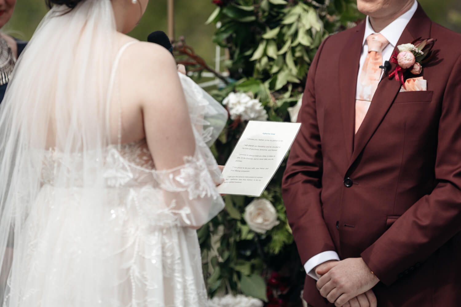 What is the vision for your Waldara Farm wedding?: We are trying to create a relaxed day that focuses on everyone having an awesome day together. I’m a bit of a creative, so we’d had a lot of fun with the decor and colours. Nathan’s embraced this by choosing himself a burgundy suit that really sets the tone.