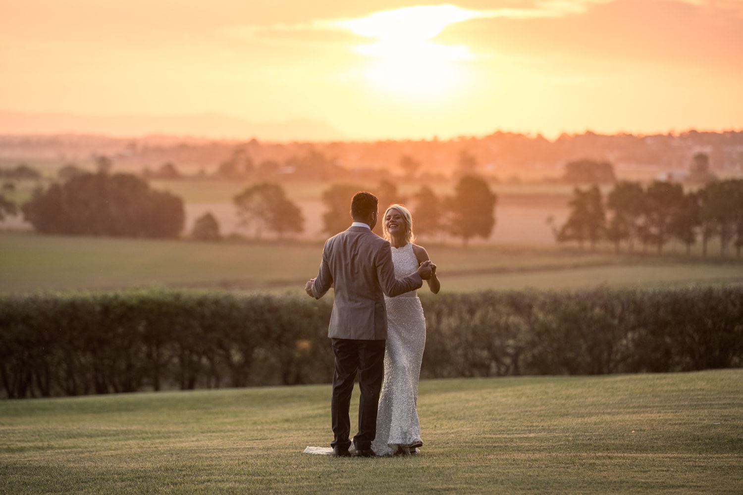 By this point, it was time for the couple to make their entrance into the reception as husband and wife. They also needed to enjoy some quality cocktail time with their guests. Before dinner was on the table, Ash and Andrew seized a small window to duck out for some sunset photos. Because of its elevation, having a Wallalong House wedding means you stand a great chance of getting a beautiful sunset. It was absolutely magical watching these two dance as the golden light spilt across the paddocks.