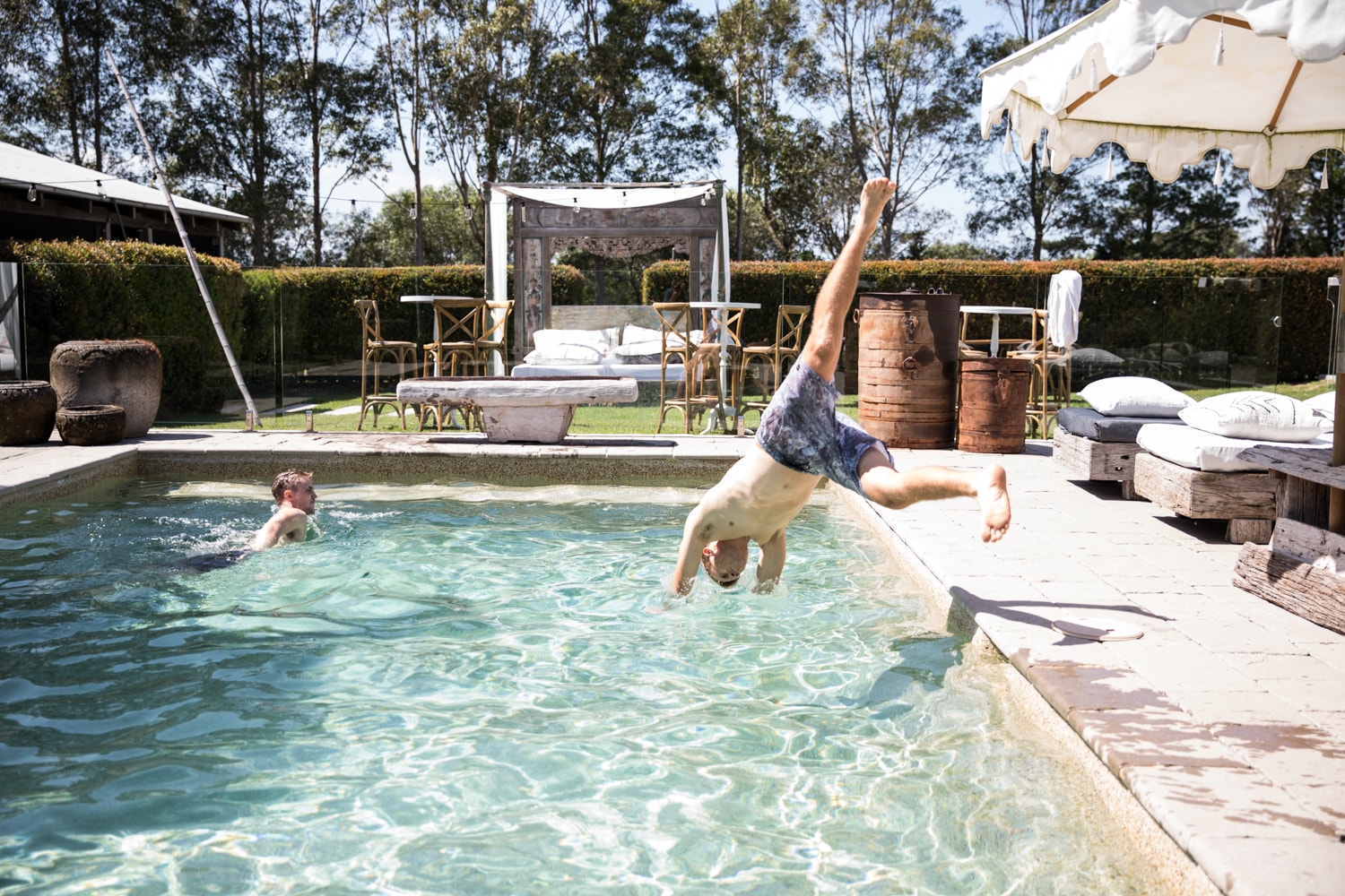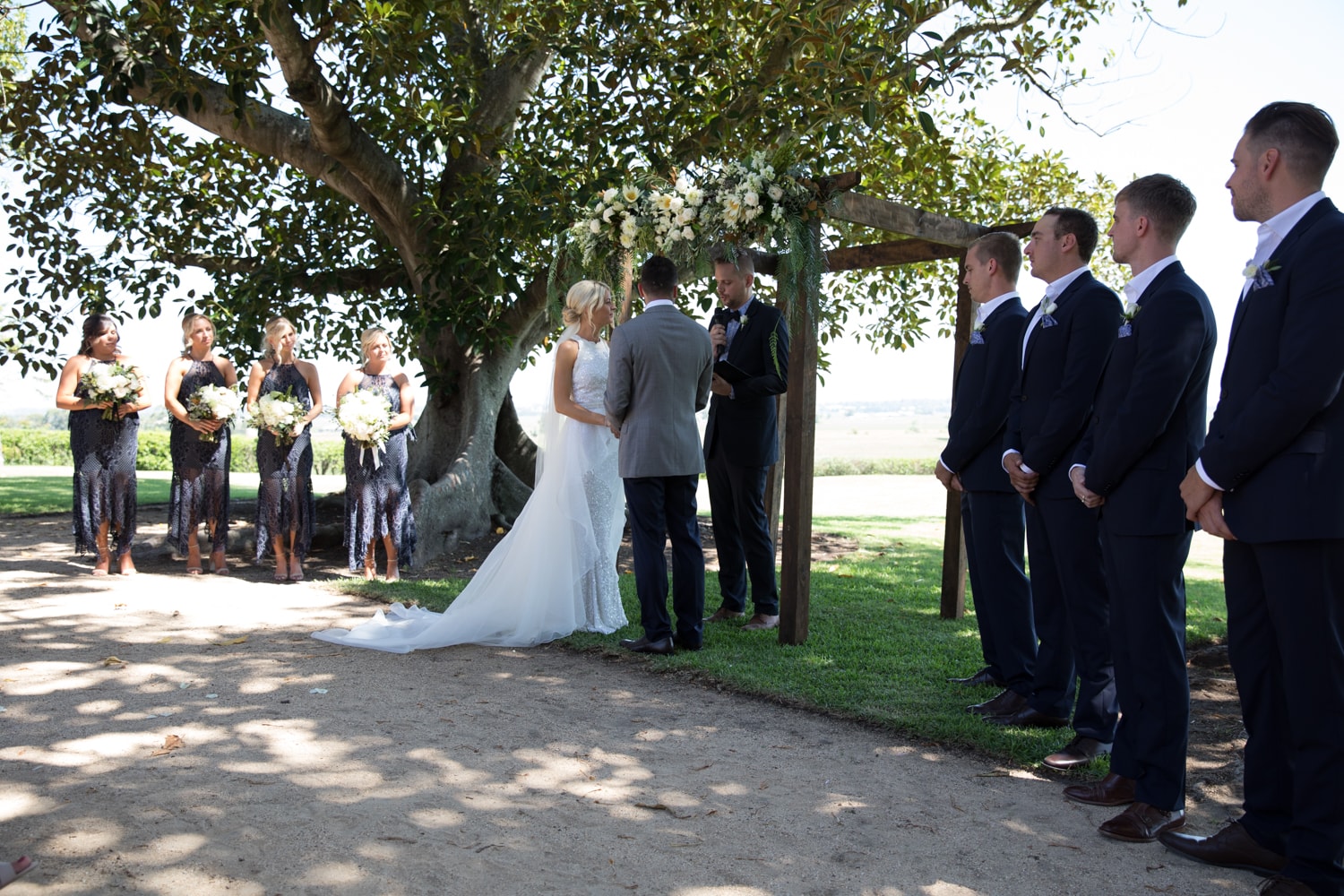 For those that haven’t been to Wallalong House in the Hunter Valley, let me paint the picture for you. A long pear tree lined driveway leads to the immaculately maintained stables which stand in front of the homestead. The stables alone are enough to impress you. But as you move through the gate towards the main building it only gets better. Wearing its old heritage with pride, Wallalong house sits elevated atop a small hill. This creates beautiful views across surrounding low lying paddocks. Two giant fig trees neighbour the architecturally designed home while creating the perfect setting for a ceremony. Across the lawn and through the pristine gardens you will find the pool area for relaxing and the marquee ready to play host to the reception.